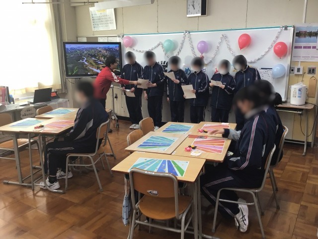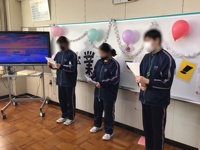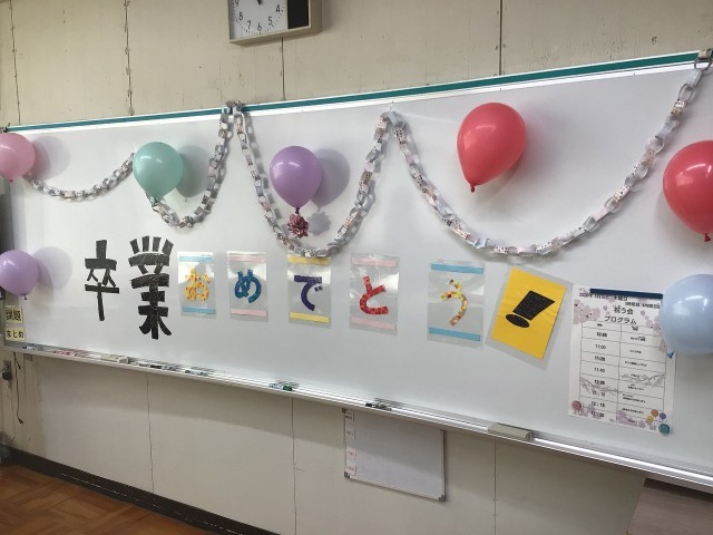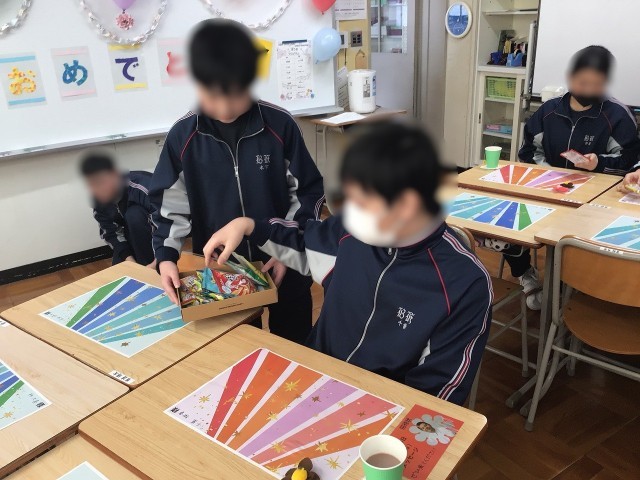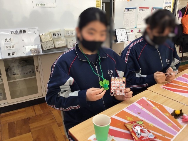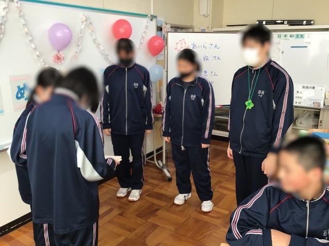 卒業・進級を祝う会のようす 公開日 2026/03/05 更新日 2026/03/05 お知らせ 本日の3,4校時は、特別支援学級で卒業・進級を祝う会を行いました。プログラムは1 あいさつ、説明2 ビンゴ大会3 ダンス動画上映会4 トランプ5 お祝いムービー6 在校生からあいさつ7 3年生からのあいさつの順に、1・2年生が卒業する3年生をおもてなしする心遣いが随所に見られました。終始、笑顔の溢れる素敵な会でした。 +7