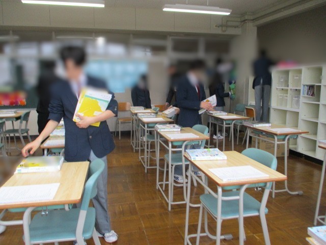 午前中には、新2.3年生が新入生を迎えるため、教科書を机上に並べたり、玄関や教室の装飾をしたりしてくれました。