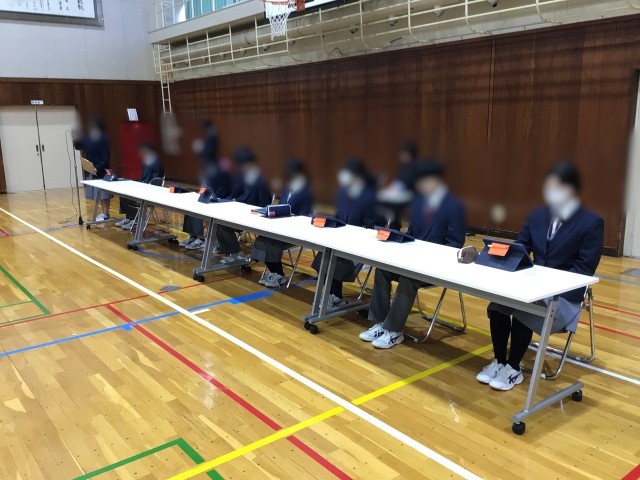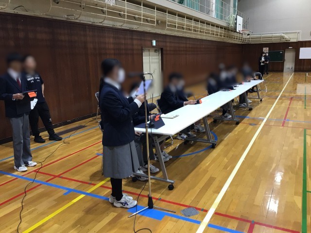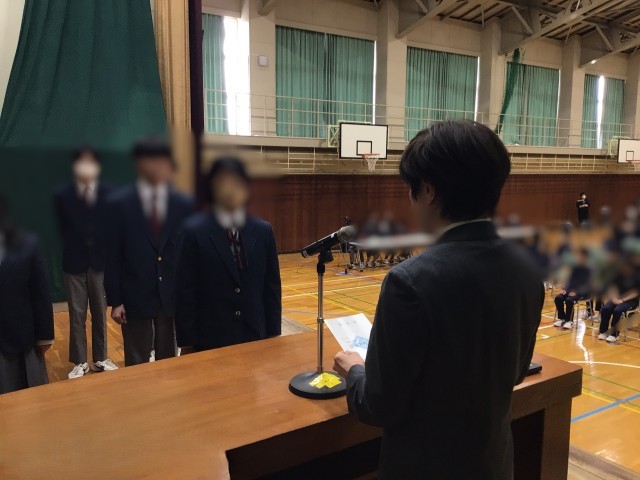 委員となった生徒の名前が委員長によって読み上げられ、代表生徒は校長から認証状を全校生徒の前で受け取りました。