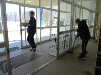 卒業を間近に控えた3年生が、奉仕活動として3年生玄関や教室などの掃除を行いました...