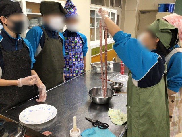 2年生 調理実習 公開日 2025/12/04 更新日 2025/12/04 お知らせ 2年生はソーセージ作りに挑戦しました。羊腸にお肉を詰めて作ります。うまく羊腸を扱えなかったり悪戦苦闘しながらも、最後には美味しそうなソーセージができあがりました。講師の先生、ありがとうございました。 +1
