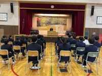5校時目は後期生徒総会を行いました。陸上部と女子バスケ部の表彰伝達も行いました。感染症のこともあり体育館(生徒会、質問者、表彰伝達対象者)と各教室でのリモート開催となりました。