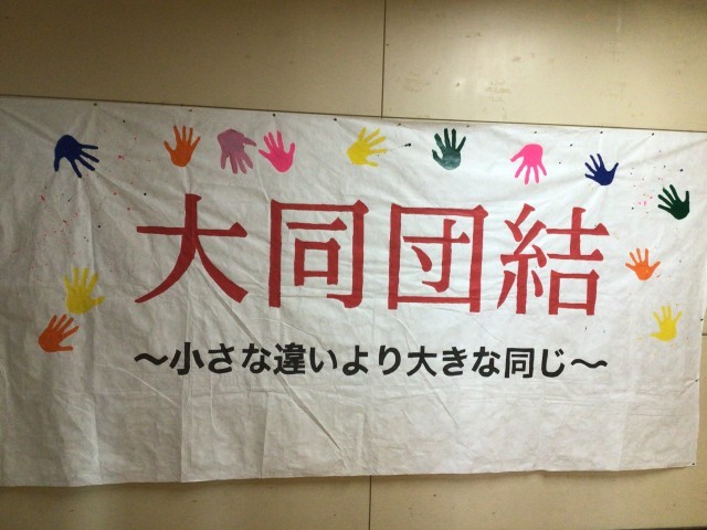 『大同団結〜小さな違いより大きな団結〜』小さな意見の相違はあるかもしれませんが、美中の生徒みんなで力を合わせて団結して活動していってくれることでしょう。